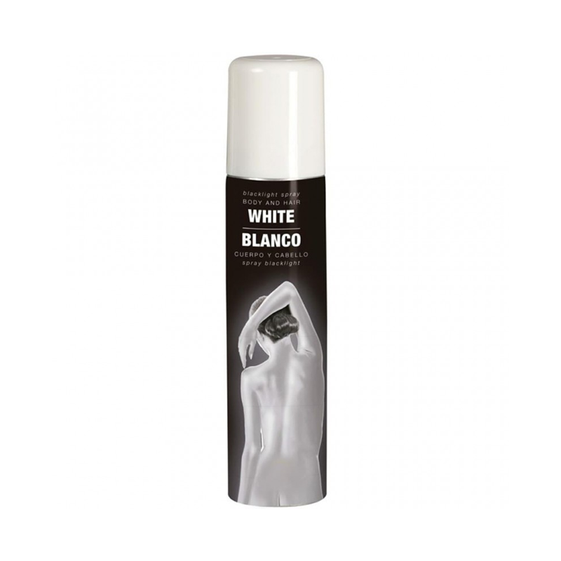 Produto composto por spray glitter branco para corpo e cabelos 75 ml.