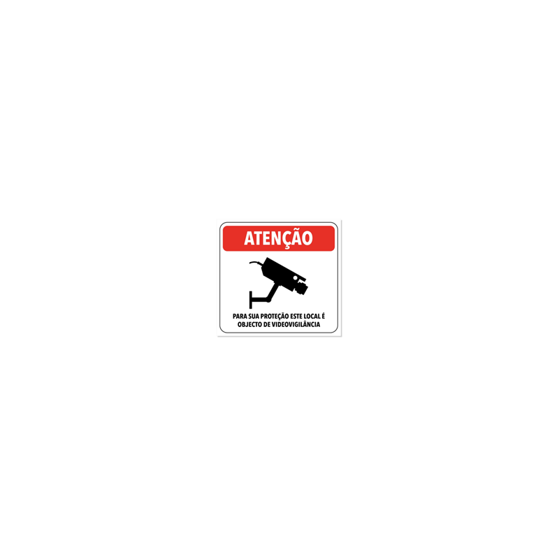 Placa sinalética autocolante com a indicação principal "Atenção - Local Vigiado". Útil para empresas (e.g. escritórios, armazéns, oficinas), condomínios e eventos.