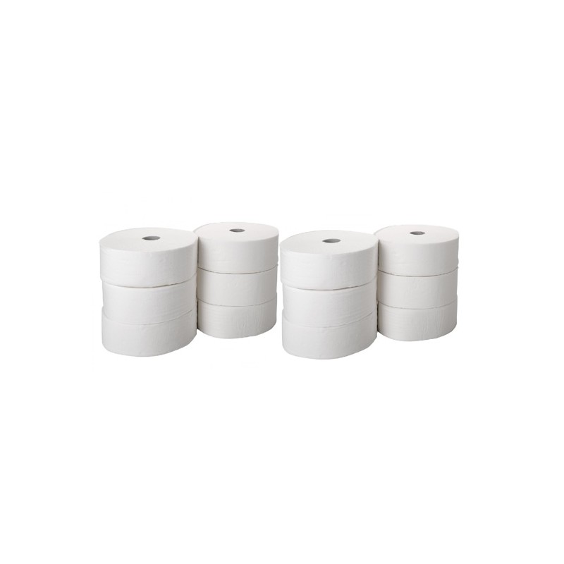Papel higiénico industrial rolo jumbo com 90 metros e folha dupla. Embalagem de 12 rolos ao melhor preço. O nosso papel higiénico industrial jumbo é ideal para cafés, pastelarias, bares, restaurantes entre outros negócios de grande frequência de público.