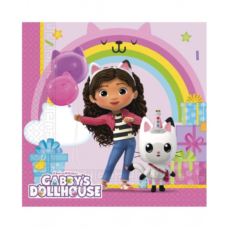 Conjunto de 20 guardanapos da Casa de Bonecas da Gabby para decorar a tua festa de aniversário com o mesmo tema. Medida: 33x33cm