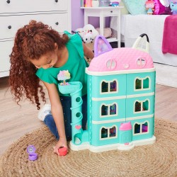 Na Casa de Bonecas da Gabby tens gatinhos fofos, trabalhos manuais excêntricos e magia colorida! Junta-te à 'gatomaníaca' Gabby e ao Pandinha numa série de aventuras animadas! Entra na Casa de Bonecas da Gabby e cria as tuas aventuras com esta perfeita casa que tem mais de 60 centímetros de altura! Esta fantástica casa de bonecas está repleta de surpresas para descobrir, incluindo a Carolita que funciona de verdade! Inclui uma figura de 8,5 cm da Gabby, do Pandinha, móveis para cada quarto, três acessórios e duas caixas surpresa. É muita diversão! Faz uma entrega na torre, pressionando no botão e abre-a para encontrares os acessórios surpresa. Abre a casa e pressiona o botão na frente para ouvires músicas, sons e frases. E muito mais pontos de interesse e diversão.