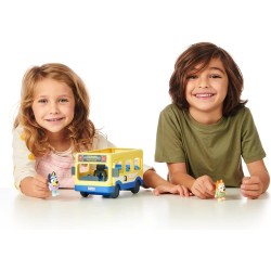 Bluey's Bus é a melhor maneira de ir numa aventura com o cenário da série da Bluey. Bluey 's Bus vem com 2 figuras de jogo: Bluey e Bingo com as suas camisas exclusivas Chimp and Chutney. Gire o mostrador na frente do autocarro da Bluey para selecionar o seu destino. Bluey 's Bus pode acomodar mais 6 figuras da série.