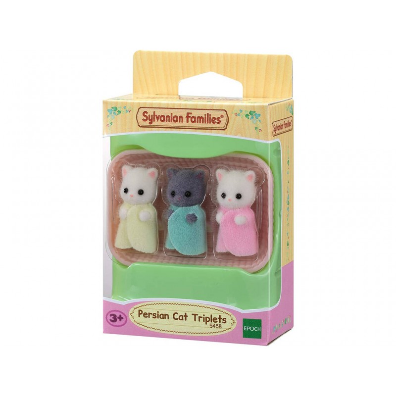 Trigémeos Gatos Família Persa da Sylvanian Families (uma linha única e adorável de diferentes famílias de animais que vivem, trabalham e se divertem no idílico mundo da Silvânia). Permite que as crianças criem suas próprias histórias, ajudando-as a desenvolver suas habilidades sociais e inteligência emocional por meio da imaginação nas brincadeiras. Sylvanian é um refúgio onde todos podem fazer parte da família, permitindo que os mais pequenos aprendam sobre relacionamentos, incluindo ser gentil e educado com todos.