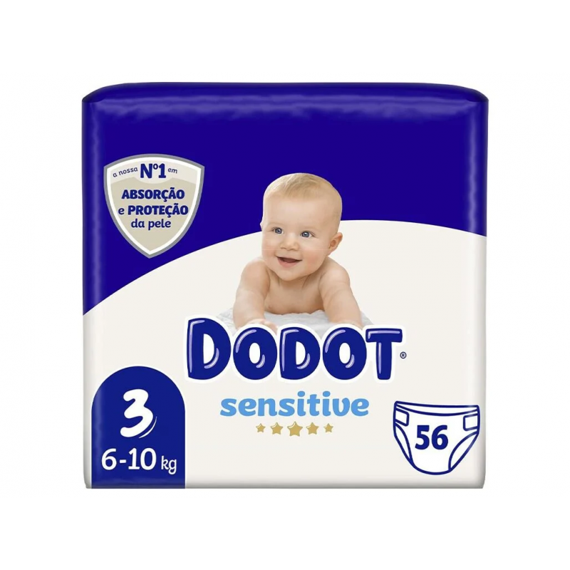 Dodot Sensitive é a número 1 em absorção e proteção da pele. Com a sua camada DermaComfort, absorve e bloqueia num instante as fezes líquidas e a urina, afastando-as da pele do bebé, diminuindo a fricção e ajudando a prevenir erupções cutâneas. Além di sso, foram feitas com materiais suaves como uma pena, para uma incrível sensação de suavidade na sua pele. Conservar à temperatura ambiente (15ºC a 30ºC).
