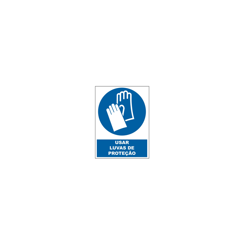 Placa Sinalética em PVC - Sinal Obrigatório "Usar Luvas Proteção" 15x20cm. Ideal para ambientes fabris e ambulatórios.